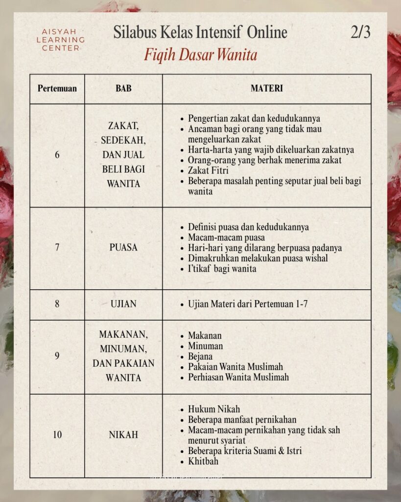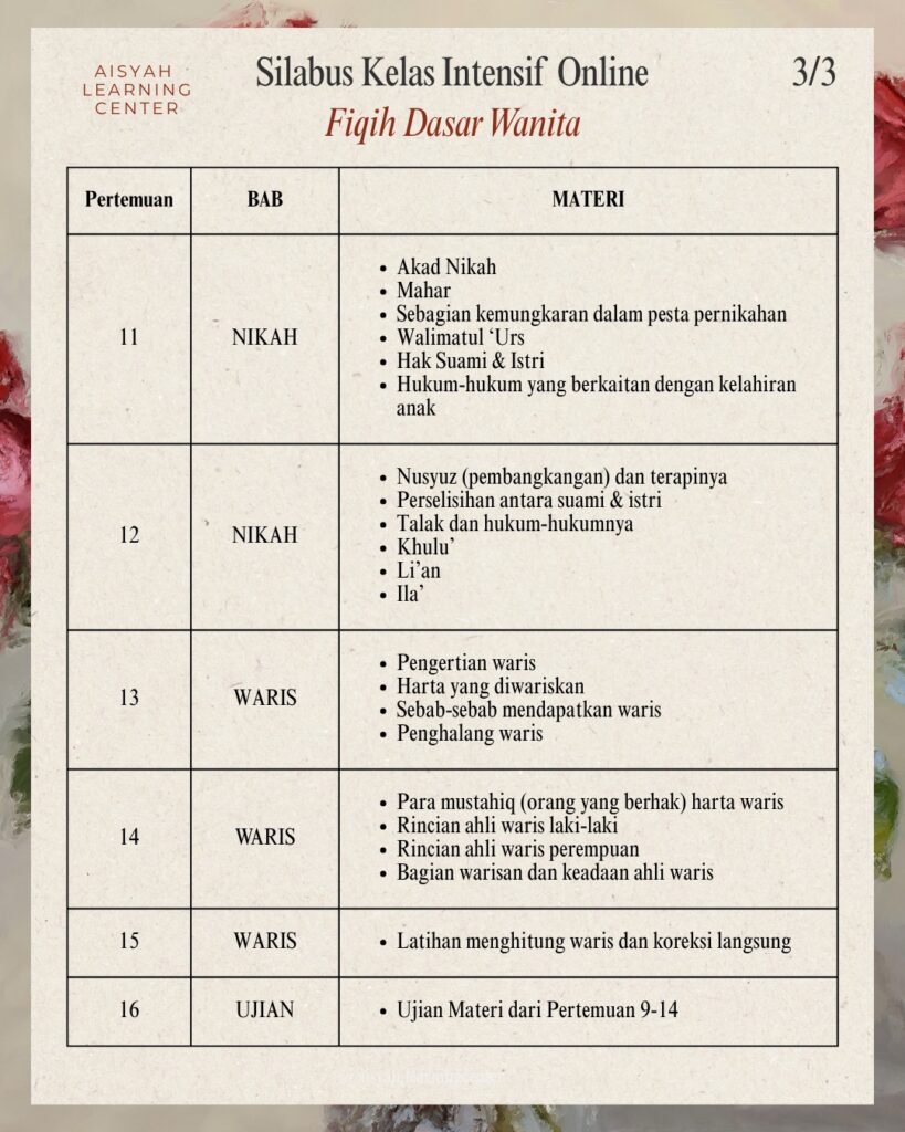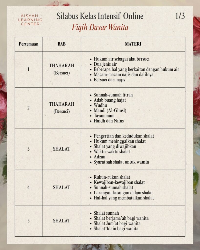 ✨ Melalui Kelas Intensif Online: Fiqih Dasar Wanita, insya Allah kita belajar dari dasar dengan sistematis, bersama;