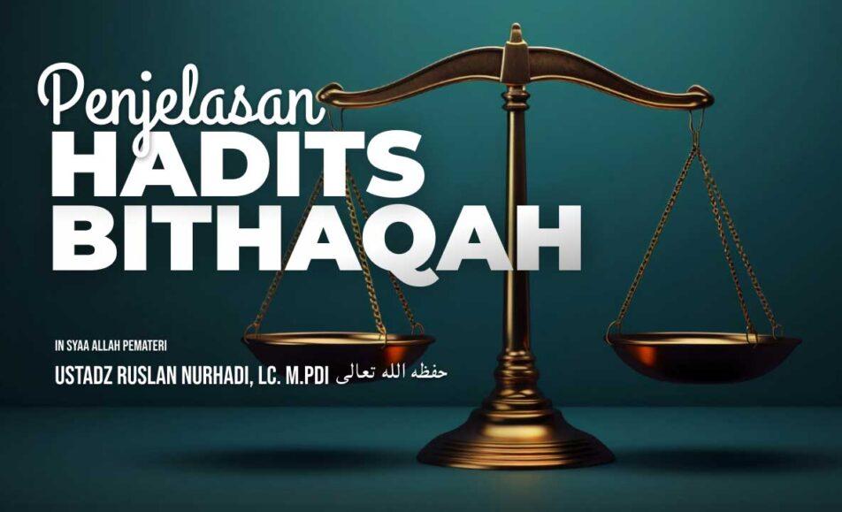 Hadits bithaqah ini menceritakan tentang seseorang yang telah melakukan banyak dosa ketika di dunia. Ia punya catatan dosa sebanyak 99 kartu. Setiap catatan amal tersebut jika dibentangkan sejauh mata memandang. Namun ia punya kartu ampuh (bitoqoh) ‘laa ilaha illallah’ sehingga...
