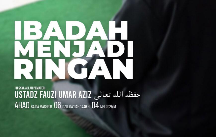 Kenapa ibadah kadang terasa berat? Apakah hati kita sedang sakit atau ada hal yang menghalangi keikhlasan? Dalam kajian ini, Ustadz akan membimbing kita untuk mengenali penyebabnya dan memberikan solusi agar ibadah menjadi ringan, menyenangkan, dan penuh makna. Agar Ibadah Menjadi...
