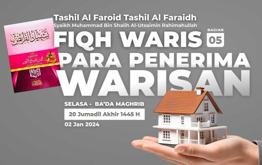 بسم الله الرحمن الرحيم Allah ﷻ sendiri yang menetapkan ketentuan pembagian warisan, karena Dia Maha Mengetahui apa yang bermanfaat dan apa yang bermudharat bagi hamba-Nya, dan Dia Maha Bijaksana dalam seluruh aturan-Nya. Kajian kali ini insaAllah akan membahas kitab Tashilul...