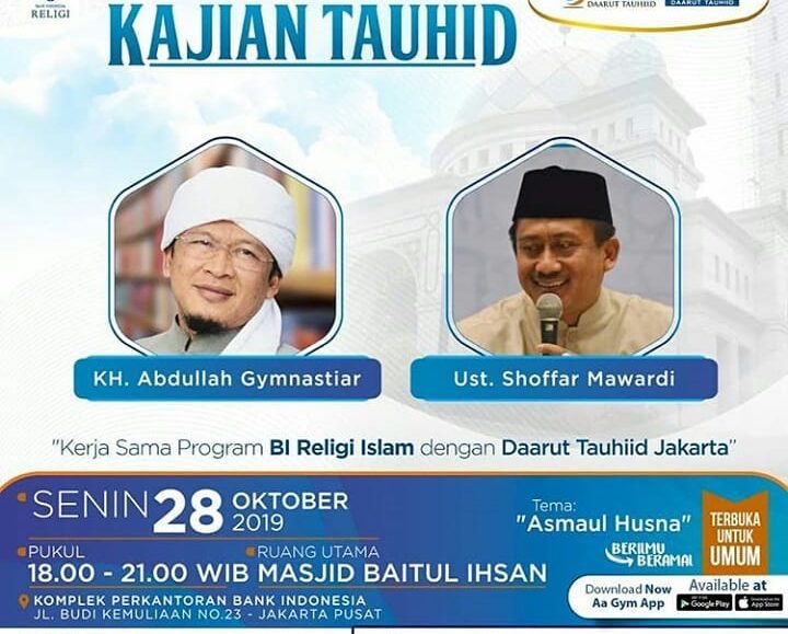God willing, Monday there will be a Tauhiid Study with Aa Gym and Ustadz Shoffar Mawardi, please join... Baitul Ihsan Mosque, Central Jakarta (Main Room) 18.00-21.00 WIB Monday, October 28, 2019 Don't forget to attend friends around Jakarta, for those who in...
