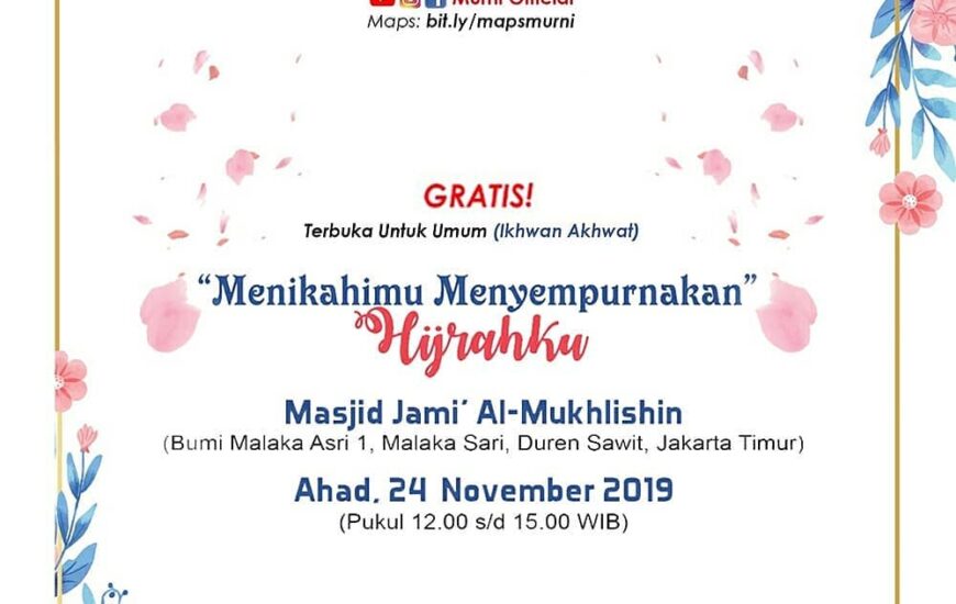 Bismillah, Hoping for the blessing of Allah ﷻ MT. Al Hijrah Presents: DAUROH ONE DAY SISTER FILLAH (SESSION-4, SPECIALLY FOR FRIENDS) MT AL HIJRAH إن شاءالله📆 Tuesday, 21 Shaban 1444H / 14 March 2023🏠 The Krakatau Grand Ballroom, Jl. Taman Mini Indonesia Indah,...