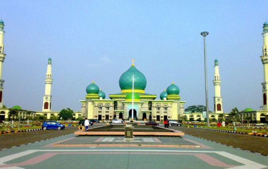 The mosque, which is in the capital of Riau Province, Pekanbaru, is currently one of the grandest in Indonesia. Viewed from the side of the building, the mosque is heavily influenced by Malay, Turkish, Arabic and Indian architectural styles.