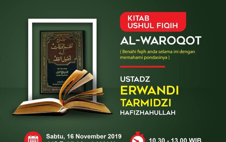 General Study Info اءَ اللَّهُ Discussion of the Book of Al-Waroqot (Ushul Fiqh) Ustadz Erwandi Tarmidhi الله Saturday, November 16, 2019 / 19 Rabiul Awal 1441 H 10.30 – 13.00 WIB As Sunnah Mosque, Bintaro Jl. Nusajaya, Pondok Ranji. Behind Bintaro Plaza....