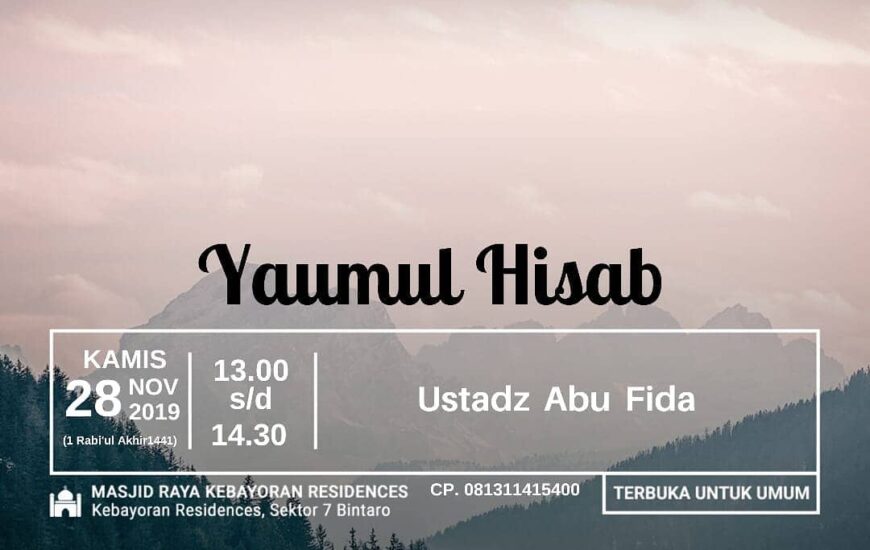 Yaumul Hisab with Ustadz Abu Fida Masjid Raya Kebayoran residence Thursday, 28 November 2019 13:00 – 14:30 Open to the public Please bring your own tumbler