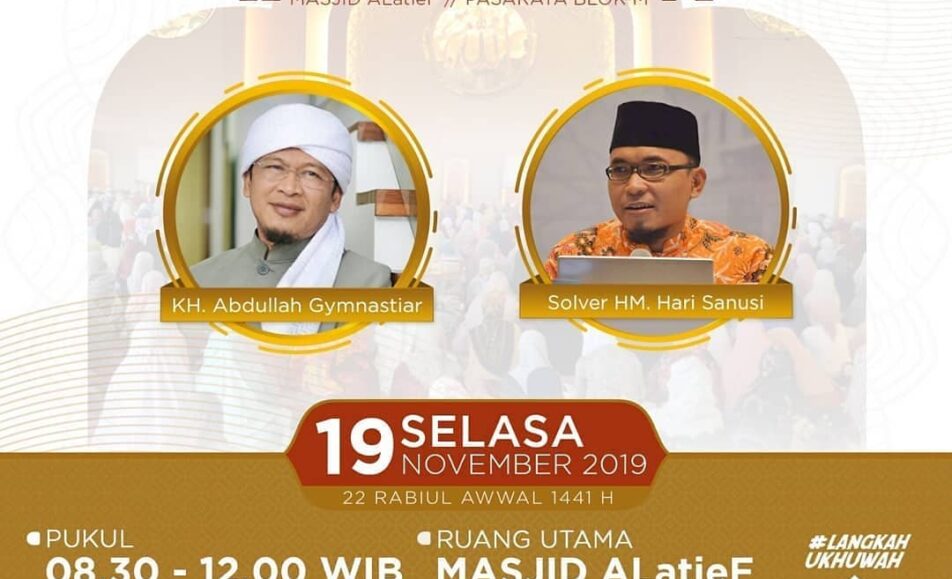 Father, Mother & Friends, God bless you. Let's attend and follow the QOLBU SERIES MANAGEMENT STUDY for Friends of Tauhiid Jakarta SATURDAY | 09 NOVEMBER 2019 | 12 ROBI'UL AWAL 1441 Together with : KH. ABDULLAH GYMNASTIAR UST. OEMAR MITA, LC Time :...