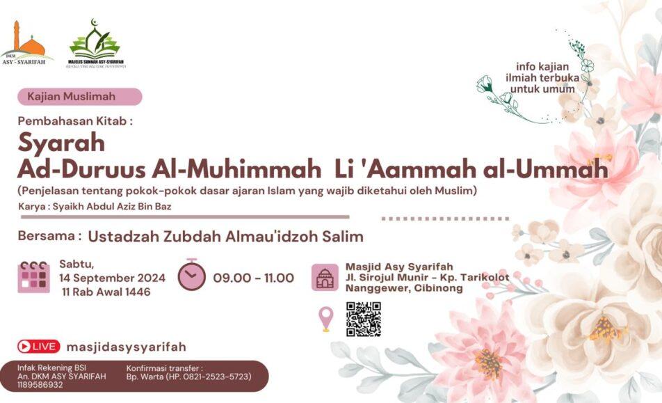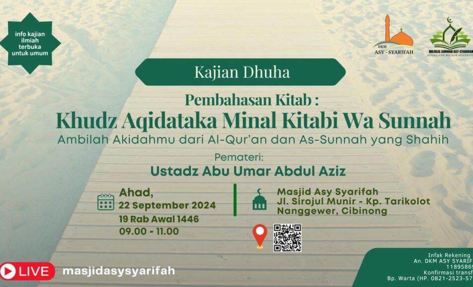 Kajian kitab ringkas yang memiliki judul lengkap Khudz Aqidataka Minal Kitabi Was Sunnah Ash-Shahihah merupakan karya dari Syaikh Muhammad bin Jamil Zainu. Kitab ini membahas tentang akidah Islam yang lurus. Penulisan kitab dalam bentuk tanya jawab sehingga sangat memudahkan kita...