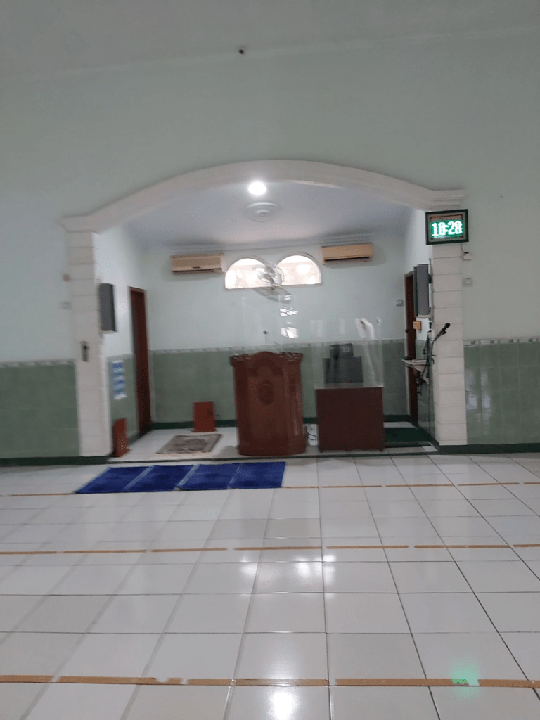 Mengelilingi ruangan adalah 6 pintu kaca lebar dan beberapa jendela kaca. Pada dinding sisi kiri dan kanan terpasang TV LCD 30” yang menampilkan jadwal waktu sholat, pesan-pesan religius serta pesan Prokes.