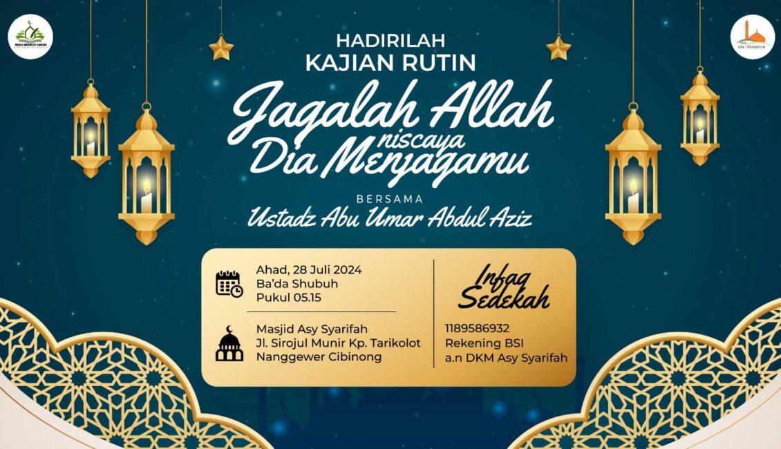 Sabda Rasulullah Shallallahu ‘alaihi wa sallam: Jagalah Allah. Maksudnya jagalah batas-batas Allah, hak-hak-Nya, serta menjaga perintah-perintah dan larangan-larangan-Nya dengan mengerjakan kewajiban dan meninggalkan hal-hal yang diharamkan. Demikian pula, dengan mempelajari agama-Nya sehingga dengannya engkau dapat beribadah kepada Allah Azza wa Jalla dan bermuamalah dengan manusia serta mendakwahkannya di jalan Allah.
