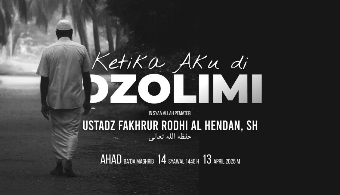 Kajian tematik berjudul “Ketika Aku Didzolimi” membahas cara pandang seorang Muslim dalam menghadapi kedzaliman yang menimpanya. Kajian ini semoga bisa membimbing untuk tidak membalas kedzaliman dengan kedzaliman, namun menyikapinya dengan kesabaran, tawakal, dan keyakinan akan keadilan Allah.