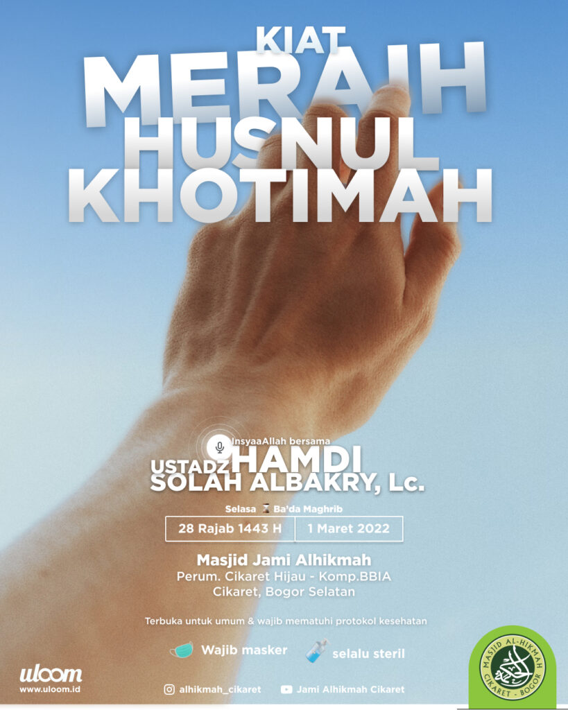 Demikian juga sebaliknya. Su’ul Khotimah adalah pertanda bahwa di akhirat kelak akan mendapat siksa yang pedih. Lantas apa tanda-tanda Husnul Khotimah? Apa saja kiat-kiat agar kita dapat meraihnya? hadiri kajiannya dengan tema: