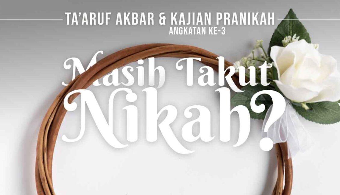 Padahal Allah Ta’ala telah menjamin keberkahan dan ketentraman jiwa bagi pasangan yang menikah. Kurangnya ilmu tentang pernikahan menjadi salah satu sebab ketakutan tersebut. Oleh karena itu daftar dan hadirilah program Ta’aruf Akbar dan Kajian pra nikah yang akan dilaksanakan insyaAllah:
