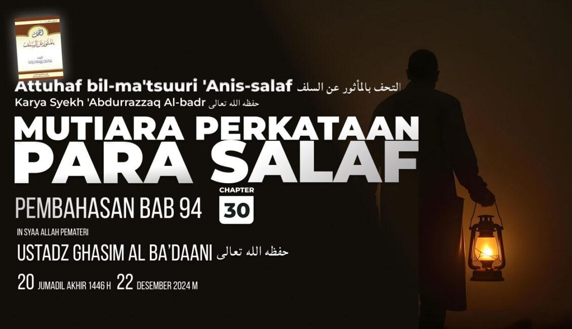 Untuk lebih dipahami mari hadiri kajian lanjutan pembahasan Kitab Attuhaf bil-ma’tsuuri ‘Anis-salaf karya Syekh ‘Abdurrazzaq Al-badr حفظه الله تعالى Bab 94 Pertemuan ke 30
