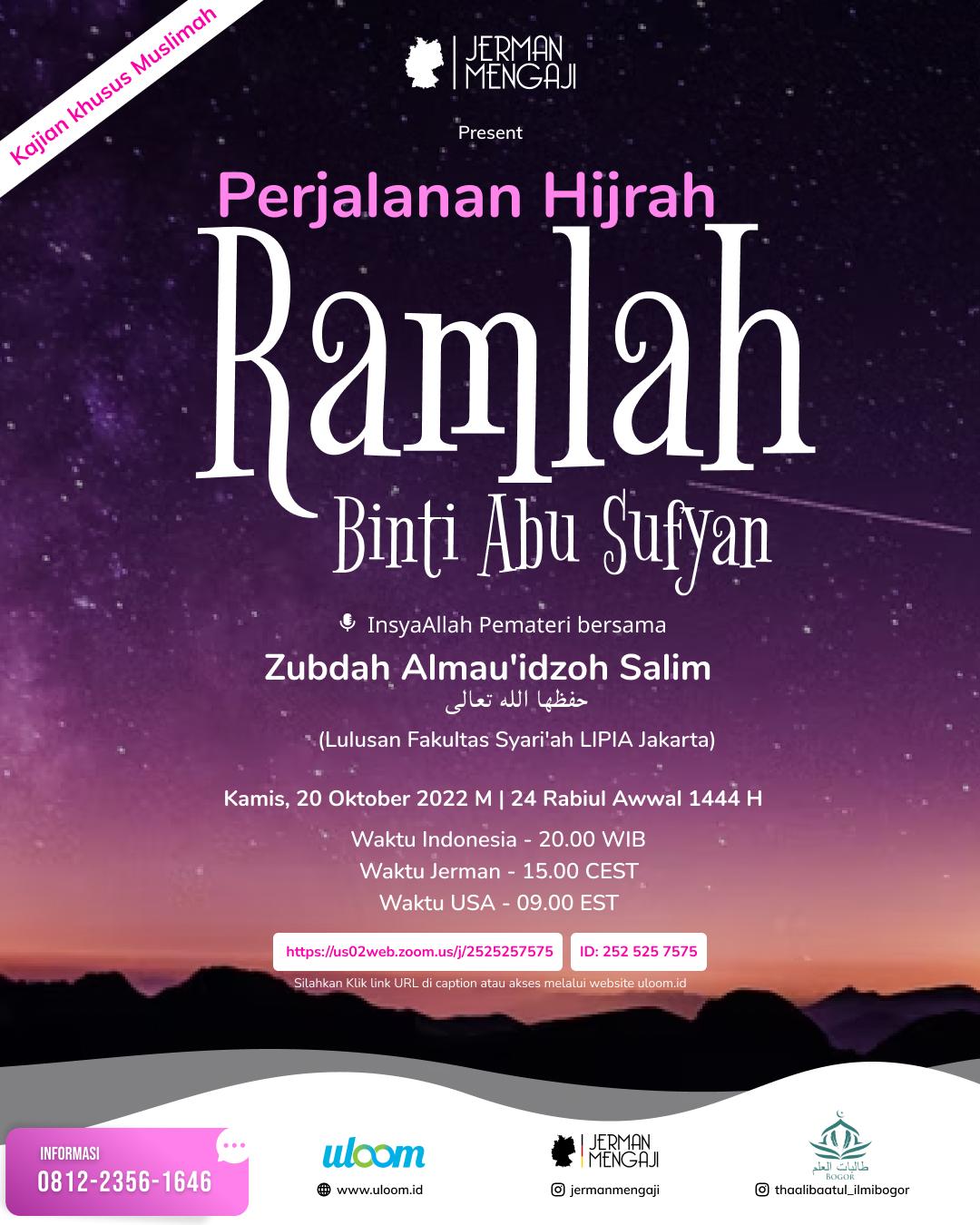 Artikel terkait kajian ini: Ummul Mukminin Ramlah binti Abu Sufyan (Ummu Habibah)