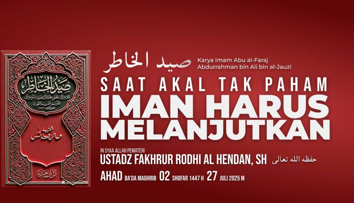 Kajian ini akan mengangkat tema “Saat Akal Tak Paham, Iman Harus Melanjutkan”, membimbing kita memahami bagaimana seorang Muslim dapat meraih ketenangan batin di tengah dunia yang fana, serta menata amal agar benar di atas petunjuk dan diterima di sisi Allah ﷻ.