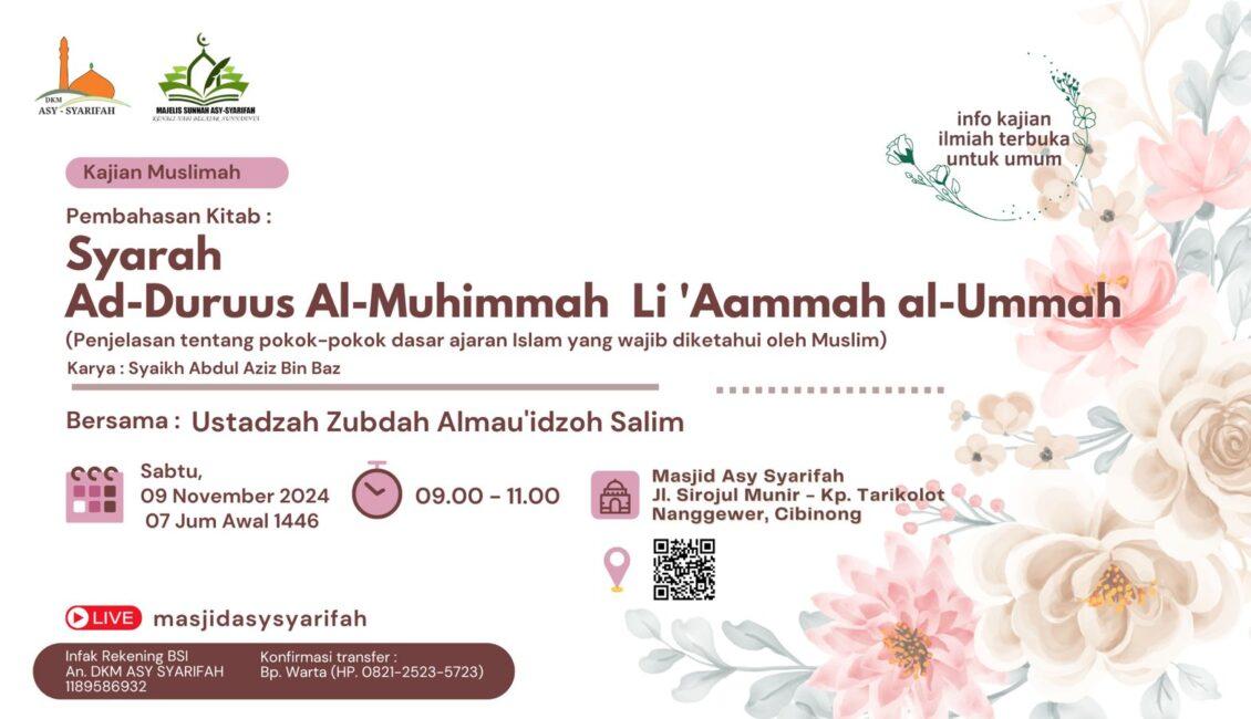 Kajian kitab yang ditulis oleh Syaikh Abdul Aziz bin Abdullah bin Baz. Dalam kitab yang beliau tulis ini sebagai nasihat dan pengajaran bagi kita mengenai perihal ajaran-ajaran agama yang patut kita ketahui dan pelajari, dari permasalahan-permasalahan akidah, ibadah dan juga akhlak, yang beliau susun secara ringkas, yakni berupa poin-poin penting dan mendasar.