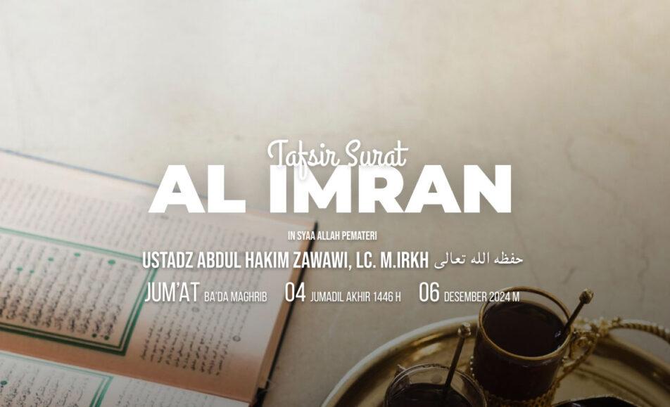 بسم الله الرحمن الرحيم Surat Ali Imran adalah surah ke-3 dalam Al-Qur’an yang terdiri dari 200 ayat. Surah ini tergolong Madaniyah dan memiliki banyak pembahasan mendalam, termasuk peneguhan akidah, nasihat kepada kaum Muslimin, dan kisah para nabi. Tafsir Surat Al...