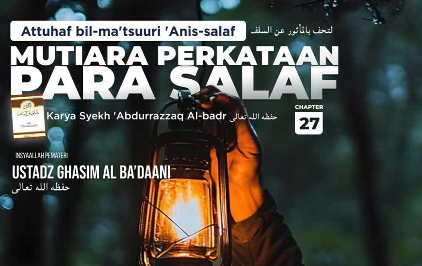 بسم الله الرحمن الرحيم Para Salaf yang shalih dianugerahi oleh Allah kekuatan lisan untuk selalu menyampaikan kebenaran berdasarkan ilmu, bukan berbantah-bantahan atau berdebat yang lebih didominasi oleh hawa nafsu. Terlebih lagi ketika mereka membahas permasalahan yang ada kaitannya dengan agama,...