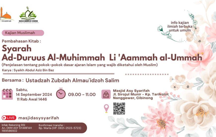 Kajian kitab ringkas yang memiliki judul lengkap Khudz Aqidataka Minal Kitabi Was Sunnah Ash-Shahihah merupakan karya dari Syaikh Muhammad bin Jamil Zainu. Kitab ini membahas tentang akidah Islam yang lurus. Penulisan kitab dalam bentuk tanya jawab sehingga sangat memudahkan kita...