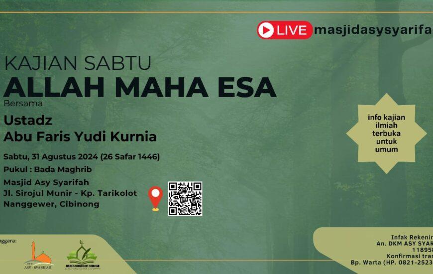 Allah Maha Esa artinya Allah adalah satu-satunya Tuhan dan tidak ada sekutu baginya. Allah Maha Esa juga berarti Allah tidak tersusun dari yang lain, tidak beranak, dan tidak diperanakkan. Allah Maha Esa 🎙️InsyaAllah bersama:Ustadz Abu Faris Yudi Kurnia, Lc. حفظه اللّه تعالى 🗓️...