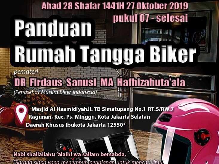 Hadirilah kajian rutin MBI yang insya Allah akan diadakan pada: Ahad, 27 Oktober 2019 Pukul 07:00 wib Pemateri ustadz Firdaus Sanusi MA,Hafizahullah Kajian kitab Tauhid Panduan Rumah Tangga Biker Lokasi Masjid Al Haamidiyah Jl. Letjend Term. Simatupang Ragunan, Ps. Minggu,...