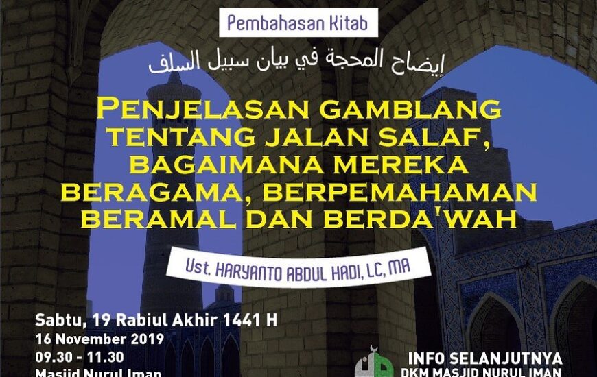 Kajian Kitab rutin — Pembahasan Kitab — Penjelasan Gamblang Tentang Jalan Salaf, Bagaimana Mereka Beragama, Berpemahaman Beramal dan Berda’wah Bersama Ustadz Haryanto Abdul Hadi, Lc, MA Masjid Nurul Iman Blok M Square, Lt.7 Sabtu, 19 Rabiul akhir 1441H 16 November...
