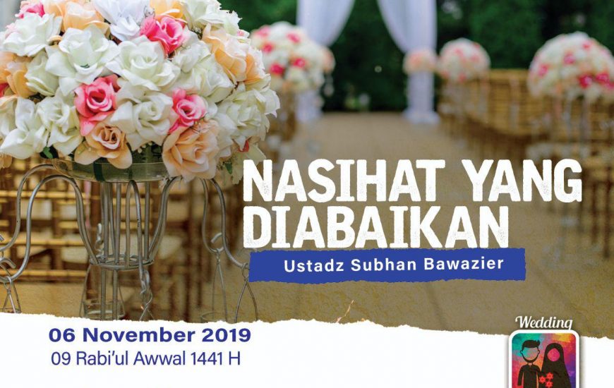 Assalaamu’alaikum warahmatullaahi wabarakaatuh THE RABBAANIANS presents NASIHAT YANG DIABAIKAN Wedding Series Insya Allah, Rabu 06 November 2019, di Masjid Agung Al-Azhar bersama Ustadz Subhan Bawazier Hafidzahullahu Ta’ala, setelah shalat Isya berjamaah sampai selesai (Isya jam 19.01 WIB). Diselenggarakan oleh KI...