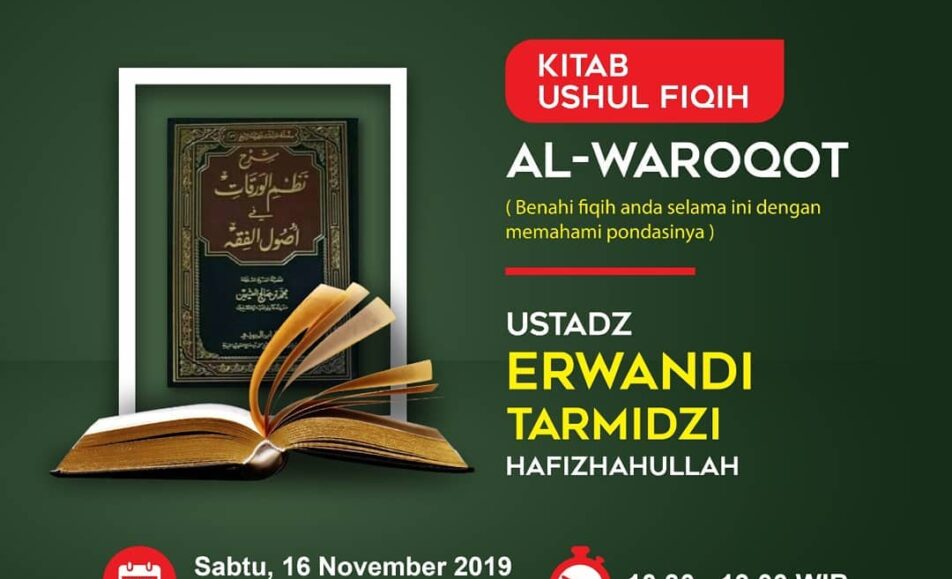 Info Kajian Umum إِنْ شَاءَ اللَّهُ Pembahasan Kitab Al-Waroqot (Ushul Fiqih) Ustadz Erwandi Tarmidzi حفظه الله Sabtu, 16 November 2019 / 19 Rabiul Awal 1441 H 10.30 – 13.00 WIB Masjid As Sunnah, Bintaro Jl.Nusajaya, Pondok Ranji. Belakang Bintaro Plaza....