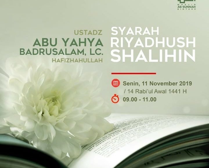 Kembali mengawali pekan ini dengan hari Senin, 11 November 2019 M/14 Rabi’ul Awal 1441 H. Pukul: 09.00-11.00 – artinya kembali kita duduk di majlis ilmu bersama guru Kita Ustadz Abu Yahya Badrusalam, Lc Hafizhahullah. Saatnya kembali meninggikan semangat dan meluruskan...