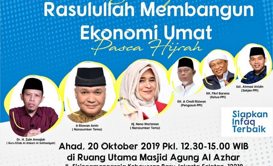 PENGAJIAN POLITIK ISLAM mempersembahkan Strategi Rasulullah membangun Ekonomi Pasca Hijrah Insya Allah, Ahad 20 Oktober 2019, di Masjid Agung Al-Azhar setelah shalat Dzuhur berjamaah sampai 15.00 WIB bersama Dr. H. Zein Annajah ( Guru Kitab Al Ahkam Al Sulthaniyah) A...