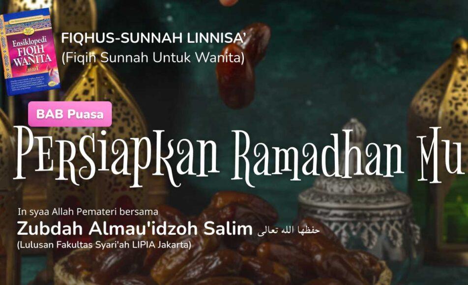 Wahai Ukhti Muslimah, Hari-hari Ramadhan tidaklah banyak, perjalanannya begitu cepat. Seorang muslimah seharusnya tidak lalai terhadap momen-momen untuk beribadah, bahkan seharusnya berlomba-lomba dan bersaing. Harus ada persiapan menyambut Ramadhan yang sebaik-baiknya. Oleh karenanya, mari kita bahas tuntas fiqih seputar Ramadhan...