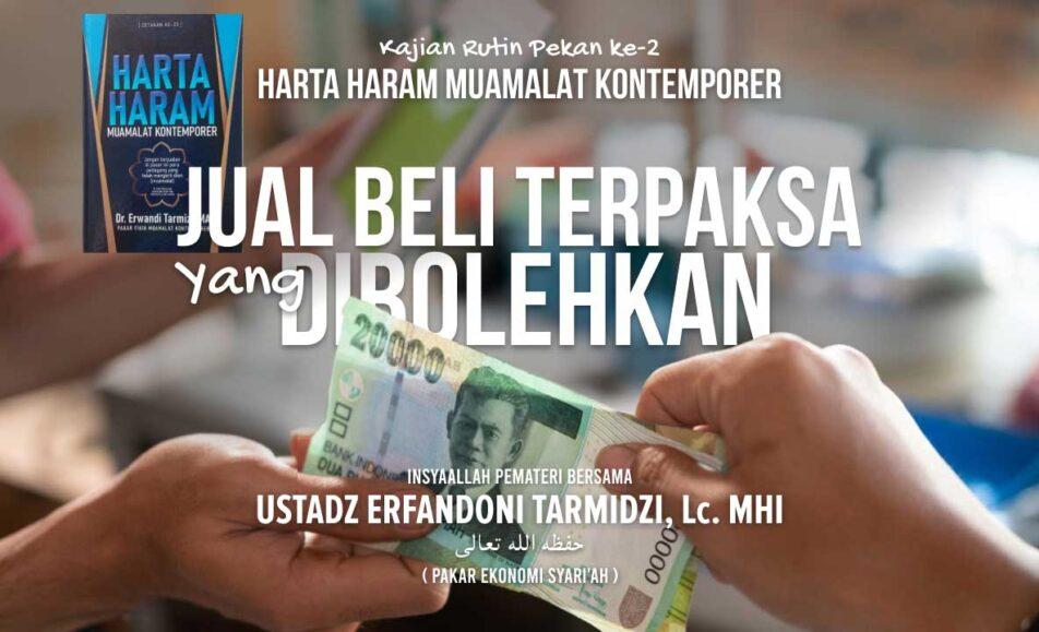 بسم الله الرحمن الرحيم Dalam Kitab Harta Haram Muamalat Kontemporer karya Dr. Erwandi Tarmizi, MA Jual beli yang dibolehkan. Pada dasarnya jual beli terpaksa hukumnya tidak boleh dan tidak sah, namun dalam kondisi tertentu jual beli terpaksa dibolehkan syari’at. Mengapa demikian?...