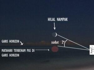 3. Pada saat terbenamnya matahari piringan atas bulan berada di atas ufuk (bulan baru telah wujud).