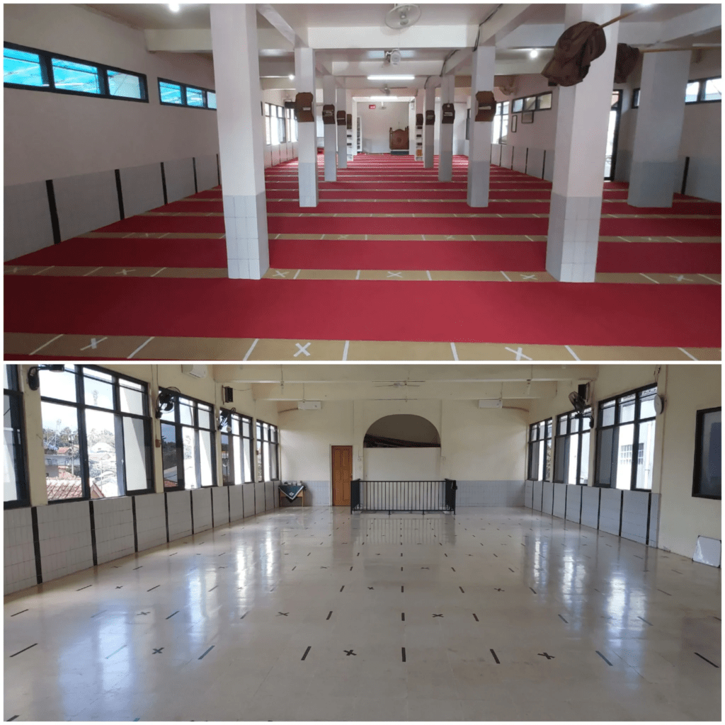 Bangunan berlantai tiga. Basement untuk sarana penunjang (toilet dan tempat wudhu), lantai 1 (luas 200m²) untuk ruang ibadah utama dan lantai 2 dengan luas yang sama untuk ruang ibadah tambahan. Total luas lantai 400m², dalam kondisi normal bisa menampung 800 jama’ah.