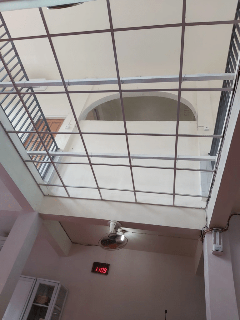 Mengelilingi ruangan adalah dinding dan jendela geser berkusen alluminium. Lantai dilapis karpet warna merah bergaris shaft warna coklat muda. Void menyita sisi ruangan bagian tengah depan berbentuk bujur sangkar berukuran 3×3 meter yang diisi dengan kerangka aluminium berkaca bening.
